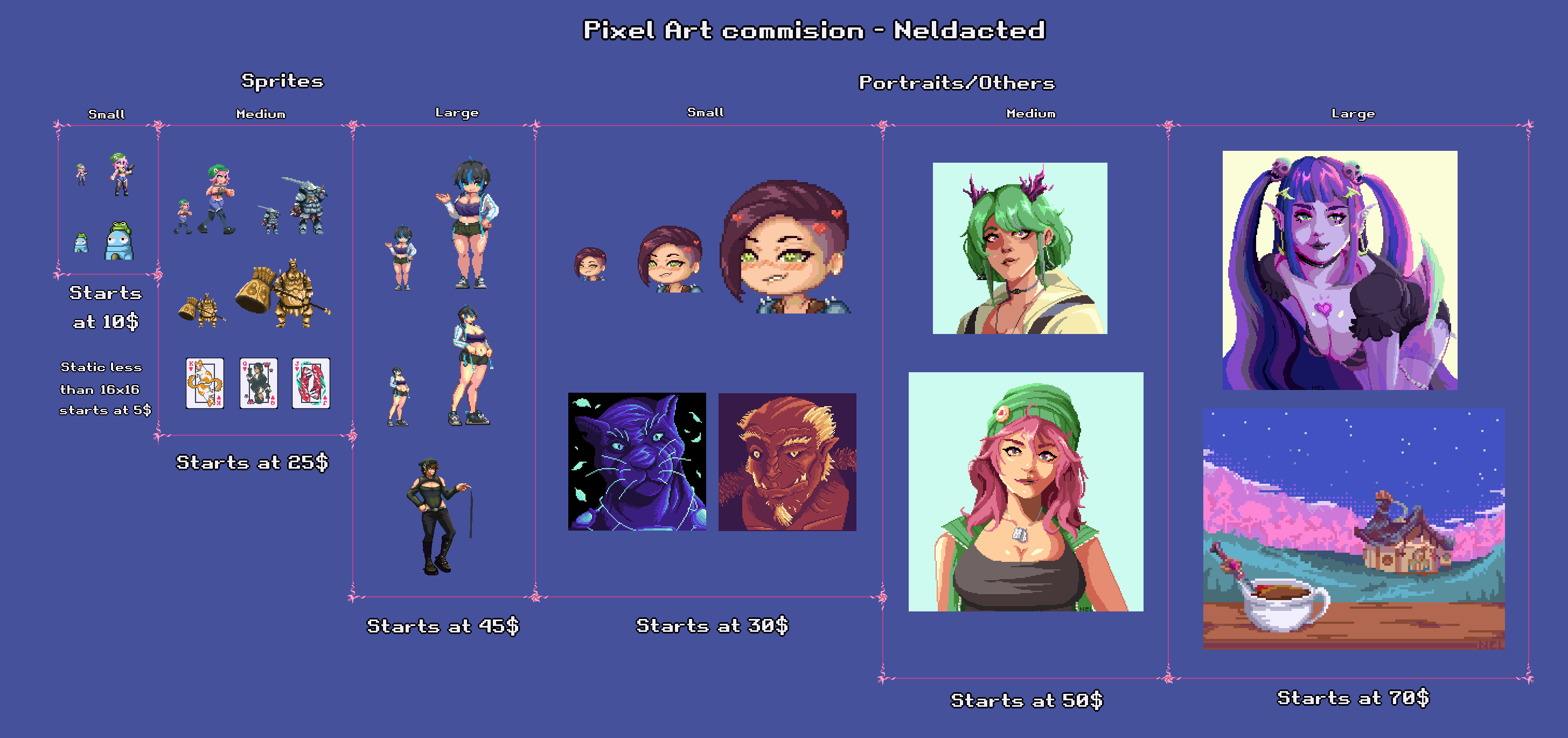 - When the commission is complete, you will get a ZIP folder with the Aseprite file, Sprite sheets if any/ specified, PNG/GIF of your choice of your desired resolution and in the original canvas size- Cannot be used for AI training-
